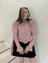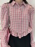【シャツ】 肩にリボンがついていて肌見せができるデザインシャツ♡ ギンガムチェックで春っぽさも取り入れ◎
