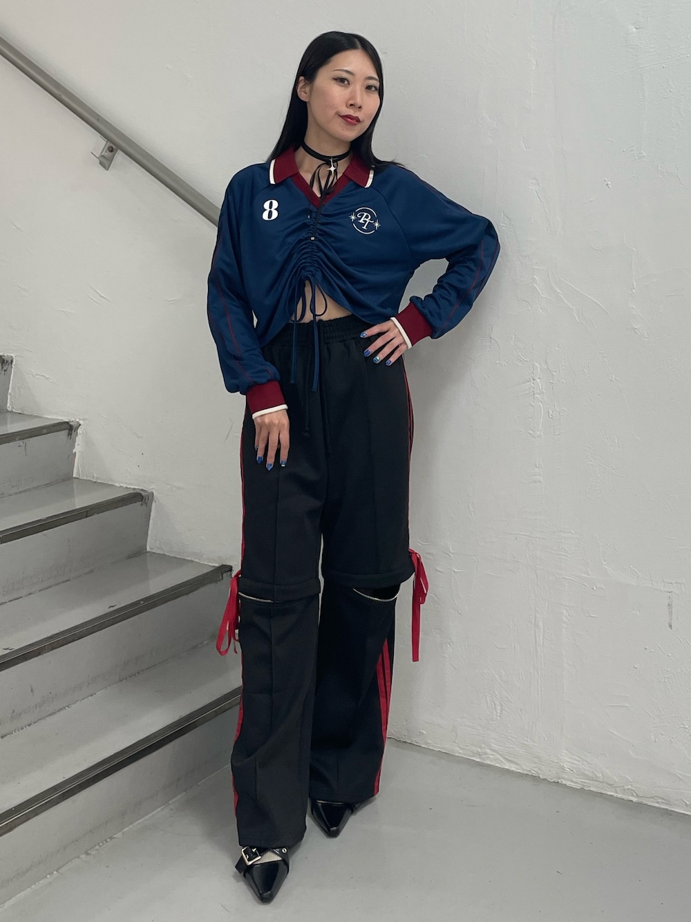 【トップス】 jouetieの派生ブランド“postokyo”のアイテム♡ トレンドのスポーティ感を出しつつセンターのギャザーで絞ることで大人っぽいシルエットを作ってます♡ 【ボトムス】 とにかく楽ちんなジャージパンツ♡ 膝のところのジップが全部取り外し可能ななでハーフパンツにもなる優れもの♡ サイドのリボンが可愛い 【靴】 ハトメベルトのパンプス♡ かかと部分の紐がゴムなのでかかとに引っかけるだけで着脱簡単♡ 軽くて歩きやすいです♡