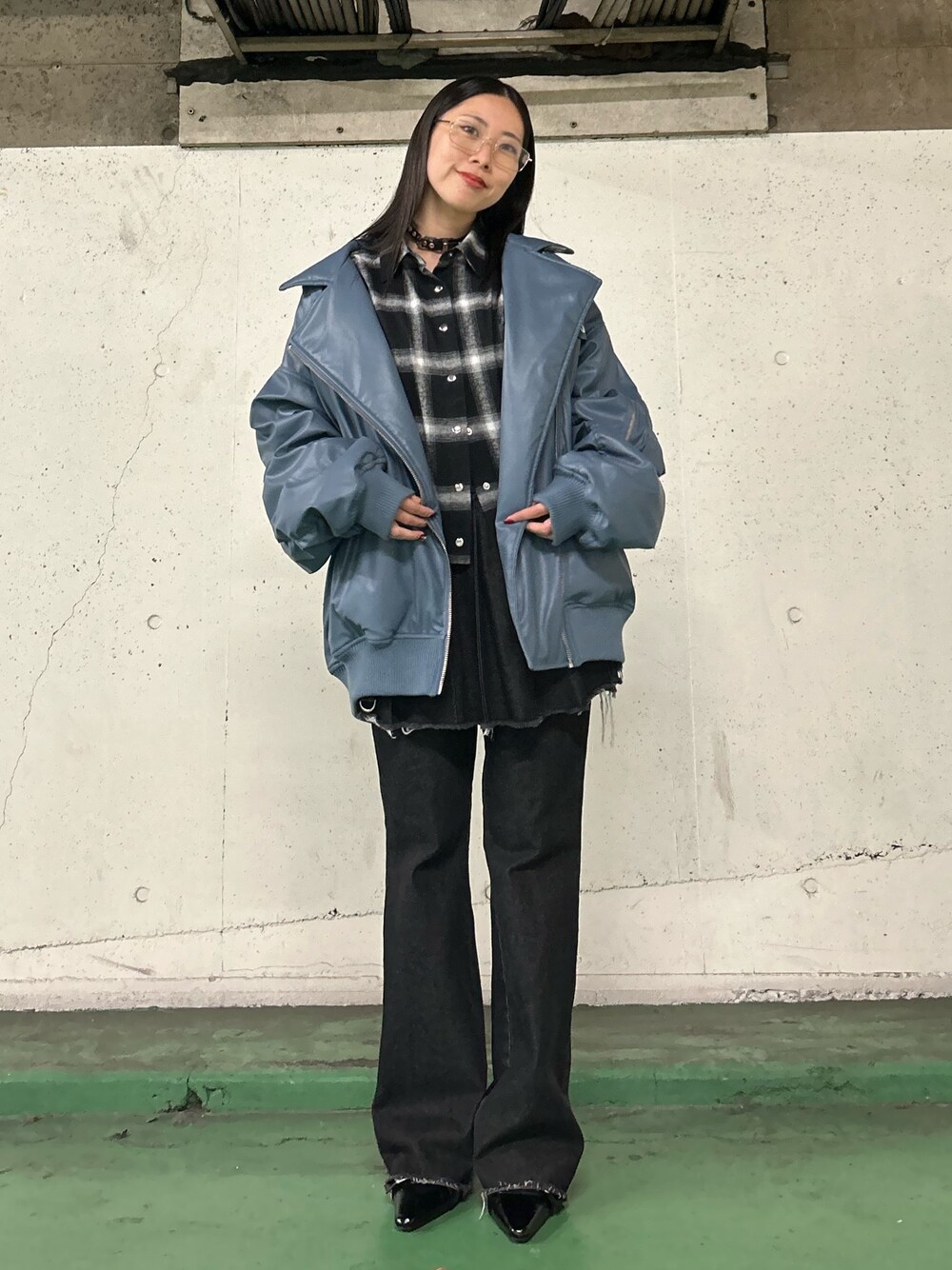【アウター】 オーバーめなライダースma-1 お尻の下まですっぽりカバーしてくれます! 袖も身幅も広めで中にニットを着込んでも着れちゃいます♡ 【パンツスカート】 パンツとスカートがセットになったアイテム♡ 156cmで丈感は少し長め!地厚で冬でもあったかいです! 別々でも着れるので気分とシーンに合わせてコーデに組み合わせていただけます! 【靴】 ハトメベルトのパンプス♡ 23.5cmでMサイズ着用。サイズはぴったりです! かかと部分の紐がゴムなのでかかとに引っかけるだけで着脱簡単♡ 軽くて歩きやすいです♡