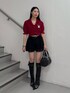 【カーディガン】 サンリオのクロミとのコラボレーションアイテム! 透け感があって、生地も柔らかいので真夏でも着こなして頂けます!丈感はおへその上くらいでショート丈なので足長効果もあります! 【パンツ】 25年トレンドのレースアイテム! 軽くて履きやすいです!ボリュームは少しあるのでシルエットもバッチリメリハリつきます! ゆったりときれるのでとっても楽です! 【ブーツ】 23.5cmでMサイズ着用! 身長156cmで膝まで丈感あります!履いた感覚は普通のパンプスを履いてる感じと似てます! ヒールは9cmで高いので脚長効果もあります♡