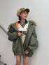 【アウター】 カーキとファーが可愛いn2b。 156cmでおしりの下の丈感。ダボッと着れるけど見た目の割に軽くて着やすいです。 裏地がオレンジなのも可愛い♥ 【トップス】 ロンズデールとのコラボアイテム! トレンドのスポーティさが可愛い!前のロゴはツルツルの加工です!サイドのギャザーで調節できますが短くして156cmでおしりが隠れるくらいです! 【パンツ】 今季のトレンドのバルーンスカート!インナーパンツが付いていて安心! 156cmおしりギリギリですが、短い分足が長く見えるのでおすすめです! 【ブーツ】 大人気のレースアップブーツ! 23.5cmでMサイズ着用。 ふくらはぎが伸縮性もあり、フィットしてくれるのでこちらも足細効果あります! 伸びるので歩きやすくてぜひ試してみて欲しいです!
