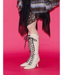 【トップス】 babyの文字が可愛いニット。 ダブルジップになってるので下を開けるとスタイルアップもできます。 全体的にピッタリめな着用感。すごく暖かいです。156cmで腰あたりの丈感です。 【スカート】 ジャケットとセットアップとしても着れるスカート。 こちらはバラのコサージュ付きです。取り外し可能です。 156cmでミニ丈ですが、インナーパンツ付いてるので安心。 【ブーツ】 レースアップのパンプスブーツ! 23.5cmでMサイズ着用。サイズ感はぴったり。着用感はすごく軽いです。