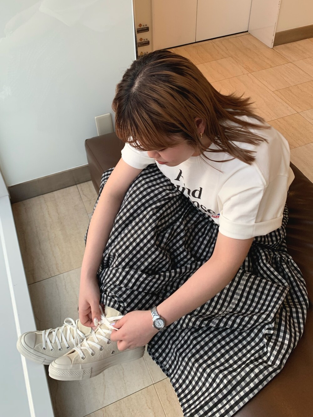 【 Ungrid×★converse 】 コンバースの原点モデルにもなっているU.S.ORIGINATORモデルを採用しております◎ 粗めなスウェード生地を使用し、他にはないコンバースです!クッション性に優れているので長時間履いても疲れにくくなってます👍 普段23.5か24.0のサイズですが、こちらのコンバースは23.5で着用です! 女性らしいスカートにTシャツとコンバースでカジュアルミックスに合わせるのがとっても可愛いです🫶