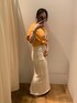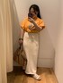 【楽ちんおでかけコーデ🍊】 《トップス》 展示会でも大人気だったTシャツが前倒しで発売されました‼️ ゆったりとしたサイズ感で、気になる所は全部隠してくれます! お尻まで隠れる丈感はなので、腰回りやおしりが気になる方にはもちろん、袖もゆとりがあるので二の腕カバーもしてくれますよ👍 ヴィンテージである色味なので、シンプルなコーディネートもおしゃれに♪ 《スカート》 ウエスト部分がゴムの為、着脱がとっても楽ちんです!(ご飯を沢山食べても大丈夫です🍚笑) 体のラインを拾わないですかと質問いただくこともあるのですが、程よくフィットし体のラインに沿わず落ちてくれるので綺麗に見せてくれます👀✨ 151cmでフラットな靴を合わせておりますが、引きずらずに着用出来ました◎ カジュアルな気分の時はスニーカー合わせもおすすめです📣 《バッグ》 コーディネートのアクセントにストライプのバッグを👜 外と中にはポケットも付いております◎ 大容量なのにおしゃれにも見せてくれるので、1つ持ってるとかなり使えます😏