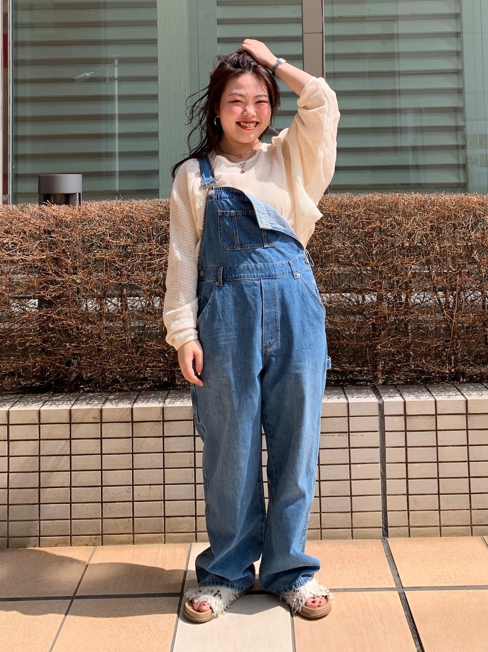 【ピクニックコーデ🥪】 《サロペット》 毎シーズン大人気のデニムサロペ👖 生地感も柔らかく着心地も抜群でした◎ Sサイズ着用で、フラットな靴合わせだと少し地面に着いてしまう丈感です。 少しソールの厚い靴を合わせていただければ、小柄な方も安心してして着用していただけます🙆🏻♀️ 《インナー》 私のお気に入りアイテム♡ 一枚で着てもですが、インナーとしてもお使いいただける優れものです✨ サロペットはメンズライクな印象もありますが、メッシュのアイテムを合わせることで肌の透け感が出て女性らしらをプラス出来ちゃいます😉