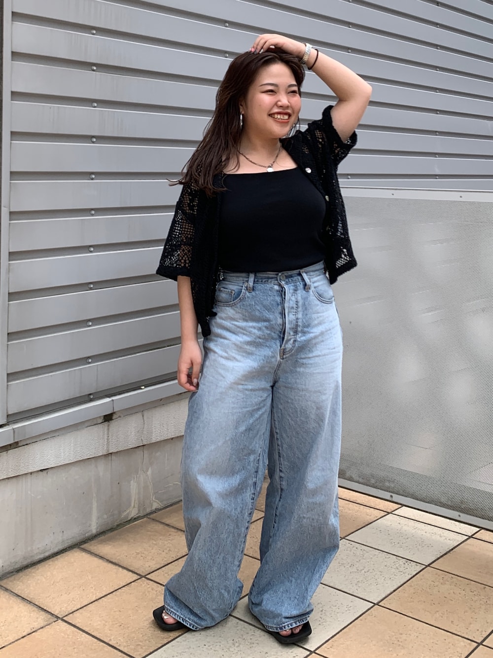 【チラッと肌見せカジュアルコーデ🌈】 《シャツ》 長すぎず、短すぎずなバランスの取りやすい丈感です! レースなので、さりげなく肌を見せが出来て黒のシャツも重たくならずに着用することが出来ます😌 《インナー》 首元がスクエアになっている為、屈んだ時の胸の心配もなしです◎ 肩細は華奢なデザインなので、シャツからチラッと見えたときもオシャレに! 《デニム》 太もも周りやふくらはぎ周りはかなりゆったりしています! ですがウエストはキュッとしているので、ルーズなシルエットのデニムもスッキリ見せてくれます♪ 151cmで24インチ着用しています◎ 長さが気になる方はお直しするのがおすすめです🙇♀️