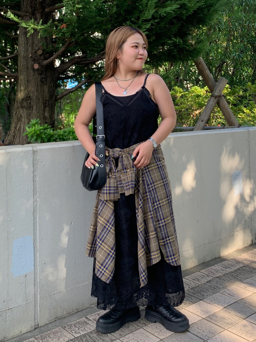 《ワンピース》 さりげない花柄がおしゃれなレースキャミワンピース♡ 肩紐で長さも調節出来るので、小柄さんから高身長の方にも挑戦しやすいアイテムです🔥 サイドにはチャックも付いているので、着脱も楽チン🎊 《バッグ》 ベルトで長さを調整できる為、肩にかけてショルダーバッグとしてお使いいただけます😊 長財布も入る広さがあるので、お出かけにも最適です! 腰に巻いてるチェックシャツはスタッフ私物です🙇♀️