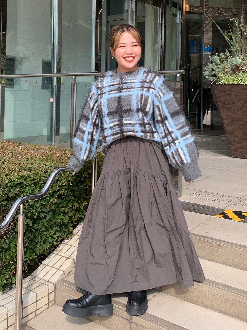 田口七海(Ungrid)のニット/セーター「チェックジャカードルーズニット」を使ったコーディネート