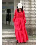 田口七海(Ungrid)のワンピース「カットワークレースコンビワンピース」を使ったコーディネート