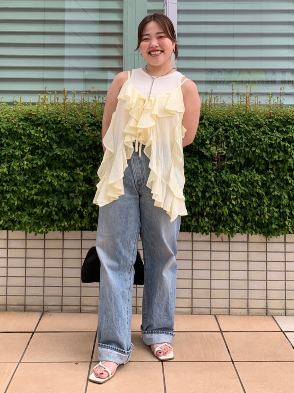 田口七海(Ungrid)のデニムパンツ「リメイクデザインルーズデニム」を使ったコーディネート