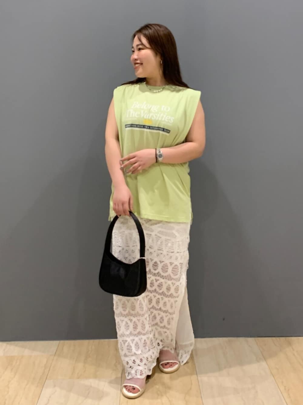 田口七海(Ungrid)のタンクトップ「ヴィンテージロゴノースリトップス」を使ったコーディネート