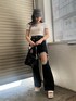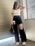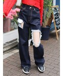黒石夏帆(EVRIS)のデニムパンツ「スクエアダメージワイドデニムパンツ」を使ったコーディネート