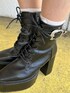 〜コラボTシャツを使ったカジュアルコーデ〜 【トップス】キティちゃんとのコラボTシャツです。短すぎない丈感なので肌見せが得意じゃない方も安心してご着用頂けます。 短めが好きな方は中央を絞って結んで着るとかわいいです。 【スカート】トレンドのラインストーンの付いたデニムのミニスカートです。可愛いだけでなく台形型のハイウエストスカートなのでスタイルアップ効果も抜群です。 【シューズ】バックルのついた厚底のブーツです。フロント部分にも厚みがあるため高低差なく足の負担がかなり少なくご着用頂けます。細めのレースアップとバックルで美脚見えする1足です。