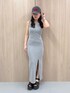【ワンピース】背中があいたリブのワンピースです。カラーバリエーションが豊富で、ピタッとしすぎていないので、様々な方が着やすい作りになってます。足元にスリットも入ってるのでロングでも重く見えず、真夏にもご着用頂けます。 【シューズ】厚底のフラットサンダルです。高さ10cmでスタイルアップ効果抜群ですが、フロントも厚底なフラットタイプなので足への負担が少なく着用頂けます。23.5cmでMサイズ着用です。 【キャップ】EVRISのロゴが入ったキャップです。ブリーチ加工のようなカラーや、リングが先端についていたりとカジュアルめのデザインですが浅めの作りなのでカジュアルになりすぎず、様々なコーデに取り入れることができます。