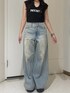 【トップス】スタッズ付きのノースリーブのトッブスです。ノースリーブですが肩が隠れるデザインで、タイトでもないためすごく着やすいアイテムです。 【ボトムス】グランジ加工の入ったワイドデニムです。普段のEVRISより少し太めで、ダボッとしたデザインになってます。 155cmでSサイズ着用です。 【シューズ】厚底のフラットサンダルです。高さ10cmでスタイルアップ効果抜群ですが、フロントも厚底なフラットタイプなので足への負担が少なく着用頂けます。23.5cmでMサイズ着用です。
