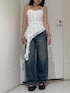【トップス】レースがついたトレンド感のあるキャミソールです。サイドがファスナーなので着脱もしやすい作りになってます。 【ボトムス】グランジ加工の入ったワイドデニムです。普段のEVRISより少し太めで、ダボッとしたデザインになってます。 155cmでSサイズ着用です。 【シューズ】厚底のフラットサンダルです。高さ10cmでスタイルアップ効果抜群ですが、フロントも厚底なフラットタイプなので足への負担が少なく着用頂けます。23.5cmでMサイズ着用です。