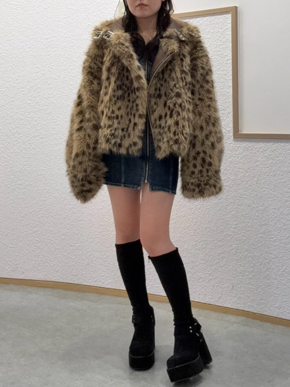 【アウター】リバーシブルのアウターです。表裏どちらもトレンド感のあるデザインなので、1着で2着をしっかりと楽しんで頂けるアイテムです。 【ワンピース】デニムのオフショルワンピースです。かなりタイトなつくりで、ピッタリとしているのでスタイルアップ効果抜群です。155cmでSサイズ着用してます。 【シューズ】スウェードの厚底ブーツです。高低差があまり無いので足への負担も少なくお履き頂けます。23.5cmで少し大きめでLサイズ着用です。