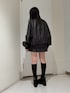 【アウター】セットアップで着用できるレザーのブルゾンです。長すぎない丈感なので華奢な方でも程よいオーバーサイズで着用できます。 【スカート】レザーのプリーツスカートです。 レザー素材でインナーショーツ付きなのでミニスカートや可愛らしいプリーツが苦手な方も履きやすいです。155cmSサイズ着用です。 【シューズ】スウェードの厚底ブーツです。高低差があまり無いので足への負担も少なくお履き頂けます。23.5cmで少し大きめでLサイズ着用です。