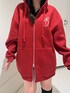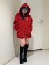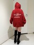 【トップス】オーバーサイズのジップアップパーカーです。裏起毛て暖かく、上下でZIPが開いたり、しっかりとフードが立ったりデザインも凄く可愛いアイテムです。 【シューズ】スウェードの厚底ブーツです。高低差があまり無いので足への負担も少なくお履き頂けます。23.5cmで少し大きめでLサイズ着用です。