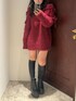 【ワンピース】肩が開いたオフショルのワンピースです。 リボンのデザインや女性らしいオフショル、カラー展開も含めてホリデーシーズンのお出かけにもピッタリの1着です。 【シューズ】秒盛れブーツとも呼ばれている人気のミドルブーツです。高低差少なく安定感ある作りなので長時間のお出かけにも向いてます。23.5cmで少し大きめでLサイズ着用です。