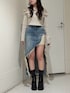 【トップス】胸元がフラワーのデザインのオフショルトップスです。ピグメントカラーが可愛くどの色も春らしく着用できるアイテムです。 【ボトムス】セットアップ着用可能なデニムロングスカートです。ざっくりと足元が開いていてスタイルアップ効果抜群です。155cmでSサイズ着用です。 【シューズ】ロングが人気だったブーツのショートバージョンです。足首がぴったりしていてスタイルアップ効果抜群です。23.5cmでMサイズ着用です
