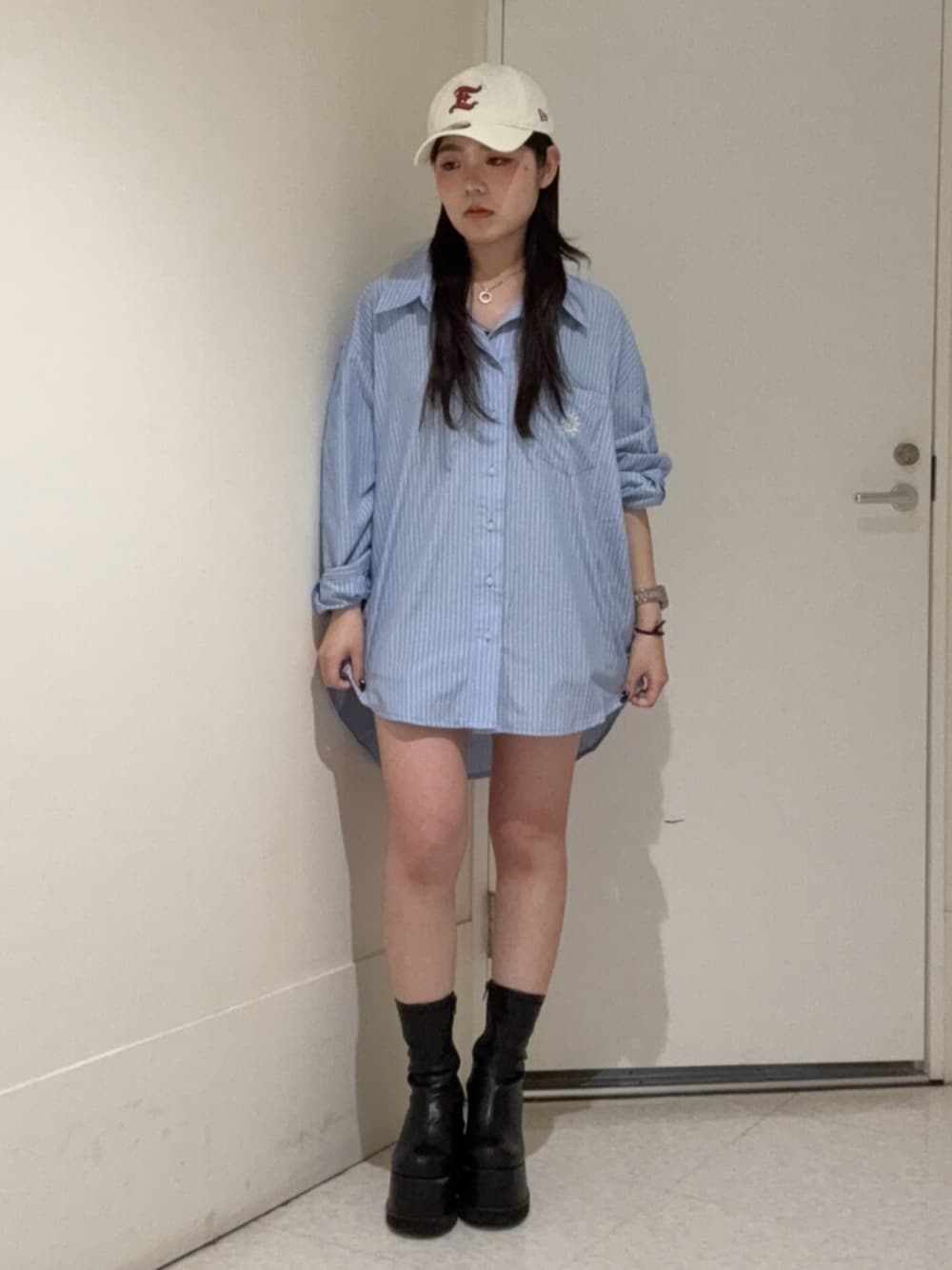 黒石夏帆(EVRIS)のブーツ「フェイクレザープラットフォームブーツ」を使ったコーディネート