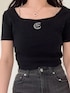 【トップス】ビジューがついた半袖のトップスです。冬に人気だったニットの半袖バージョンでサマーニット素材になってます。 【ボトムス】大人気のバックスラッシュデニムのダメージ部分にレースがついたアイテムです。カラーによってレースの色も違い雰囲気も変わるので様々な系統の方に履いていただきやすいアイテムです。155cmでSサイズ着用です。 【シューズ】ロングが人気だったブーツのショートバージョンです。足首がぴったりしていてスタイルアップ効果抜群です。23.5cmでMサイズ着用です。