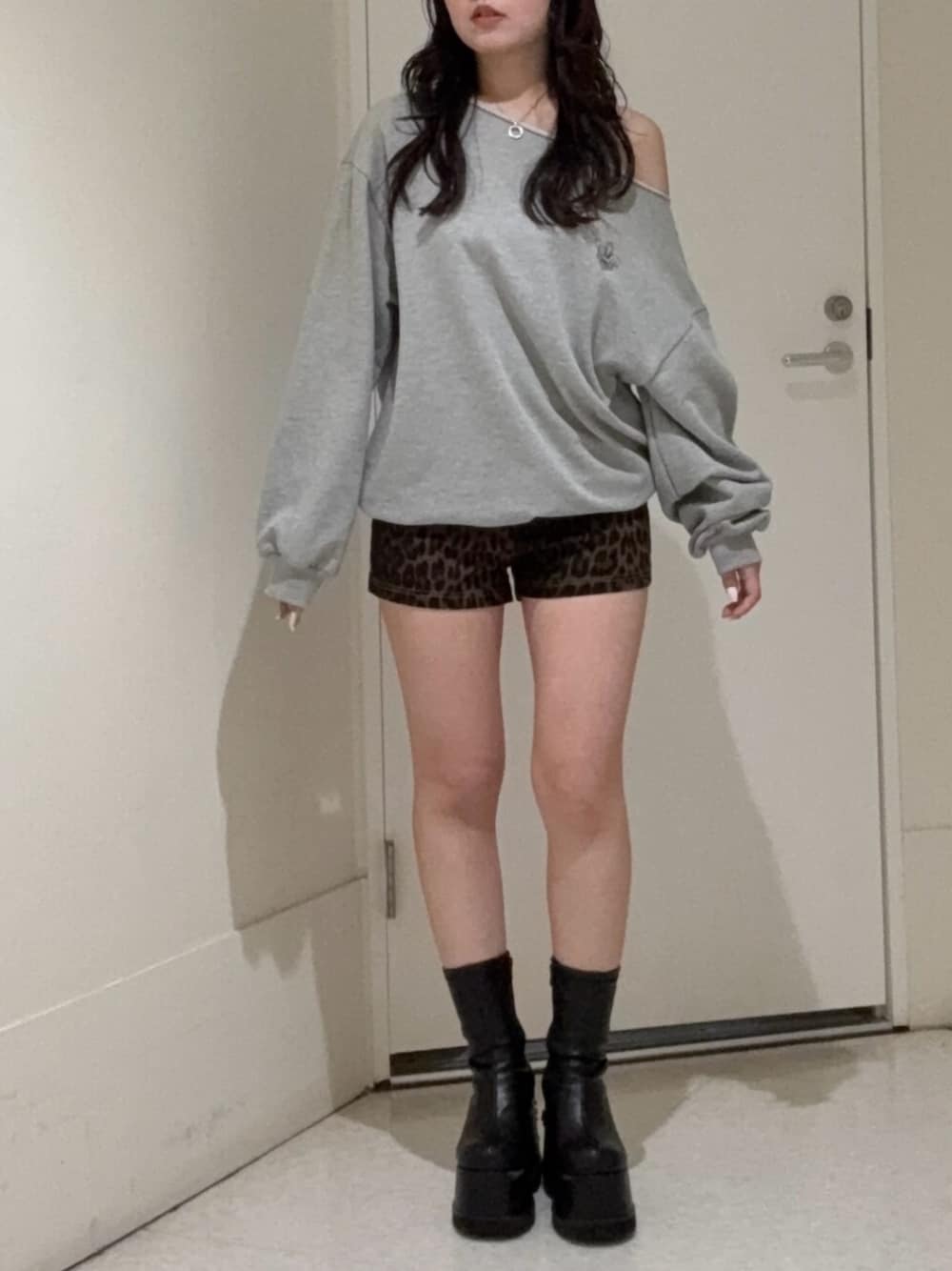 【トップス】ワンポイントが可愛いワンショルトップスです。オーバーサイズなので高身長の方でもワンピース風にご着用頂けます。 【ボトムス】ストレッチのきいたショートパンツです。ピッタリとしたシルエットなので、トレンド感があり春コーデで大活躍しそうなアイテムです。155センチでSサイズ着用です。 【シューズ】ロングが人気だったブーツのショートバージョンです。足首がぴったりしていてスタイルアップ効果抜群です。23.5cmでMサイズ着用です。