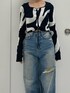 【tops】 スクエアネックになっているニットは首元スッキリ見せることができ、春らしく抜け感を出しつつ、首を長く見せれます! レースアップのデザインのため、中にキャミを着ていただくのがおすすめです! 【denim】 クラッシュデザインのルーズデニムはウォッシュデザインが施されており、足が立体的に見えるのでルーズでもスタイルが盛れます!