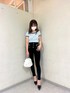 きれいめカジュアルコーデ♡ 【tops】店頭でも大人気のGG TILEシリーズ♡ニット素材なので、チクチクせず肌触りも良く着心地抜群です!首周りが大きく作られているのでオフショルでも着て頂けます✨【bottom】ウエストがレースアップになっている珍しいデザインのスキニー👖✨ストレッチが効いているので履きやすく脚長効果抜群です!ショート丈のtopsとの合わせがオススメです!【shoes】GYDAで定番のポインテッドミュール👡フロントにGGのロゴが付いているのがポイントです☝🏻つま先の部分にヒールが付いているので歩きやすくなっております!【bag】5wayで使って頂ける大活躍間違いなしのリュックです!クロコダイル柄で高級感もありイチオシ商品です♡