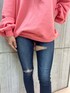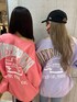 カジュアルコーデ🩷💜 【tops】毎年大人気のドルマンスウェット!今年は丈の長さの前後差が無くなり、どんな方でもワンピース風に1枚で着用出来るようになりました!後ろのインパクトのあるロゴがポイントです!【bottom】内ももにダメージが入ってるGYDAらしいセクシーなデニム!高めの位置にダメージが入っているので脚長効果抜群♡ハイウエストなのでショート丈のTOPSと合わせるのもオススメです!【shoes】定番の大人気ポインテッドミュール!クッション性もあり、オールシーズン使って頂けて美脚効果も抜群です!