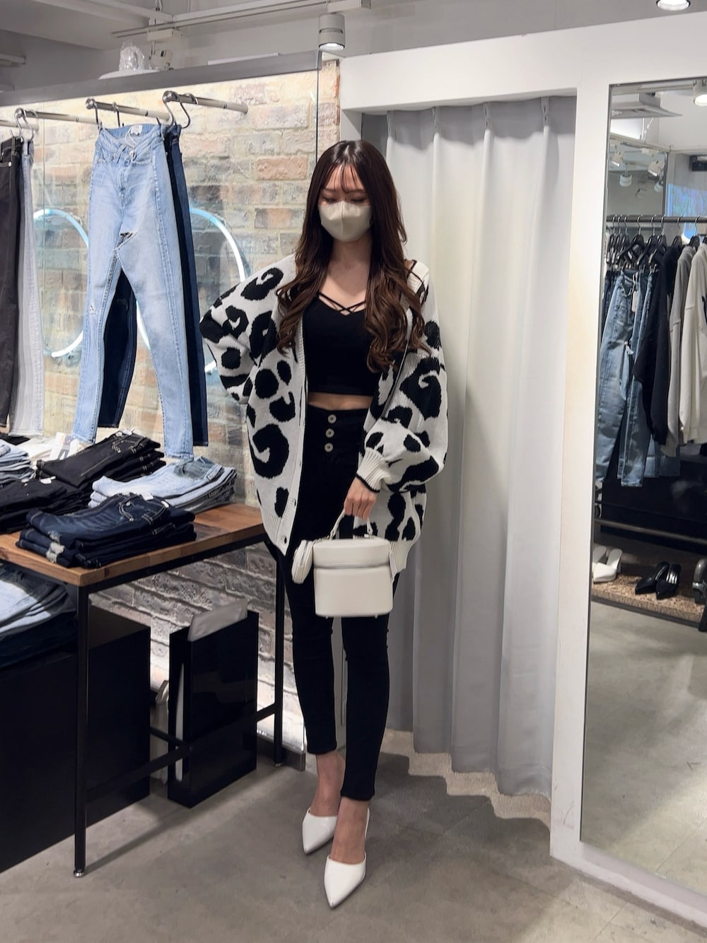 春コーデ♡ 【cardigan】今大人気のレオパード柄のカーディガン!丈感は長く、163cmの私でもおしりすっぽり隠れる長さになるのでかなりゆったりと着て頂けます!レオパードの柄をよく見ると「G」っぽくなっているのもポイントです♡【inner】GYDAで定番のバインダービスチェ!カップ付きなので1枚で楽に着て頂けます!【bottom】オールシーズン人気の脚長効果抜群デニム!後ろのウエストの部分がクロスになっていて、さりげない肌見せが出来ます♡ハイウエストデニムなのでショート丈のtopsとの合わせがオススメです!【shoes】定番の大人気ポインテッドミュール!クッション性もあり、オールシーズン使って頂けて美脚効果も抜群です【bag】今流行りのバニティバッグ♡GYDAのロゴ入りのポーチ付きで、取り外して小物入れとしても使って頂けます!