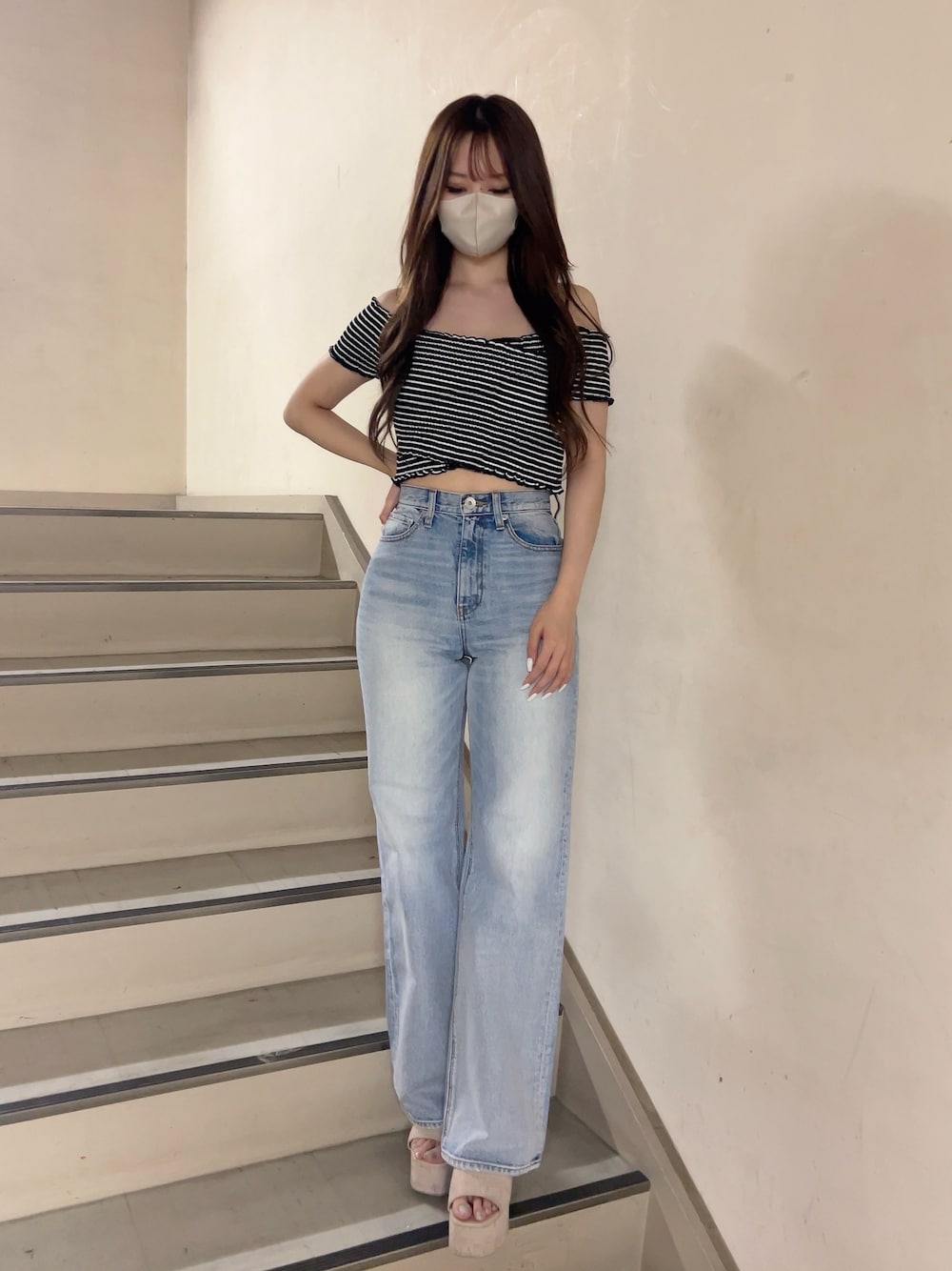 きれいめカジュアルコーデ🌞♡ 【tops】フロントがカシュクールになっているトップス!オフショルなので首周りがスッキリし、デコルテを綺麗に見せてくれます!丈は短めなのでハイウエストのパンツと合わせるのがオススメです! 【bottom】GYDA新シリーズのハイエンドデニム!ワイドパンツですが、ウエストはキュッとしているので脚長効果抜群です! 【shoes】毎年大人気のコルクサンダル!履くだけで春夏気分になれます♡安定感がありとっても歩きやすいです!
