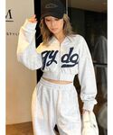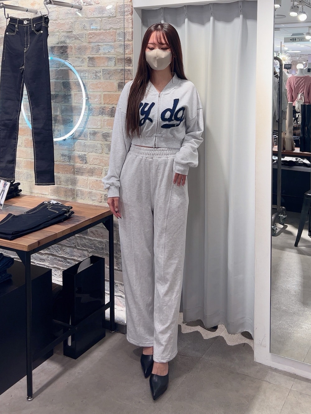 【tops】デニム生地で施されたgydaロゴがポイント♡スウェット生地なのでカジュアルとしてもスポーティとしても着用して頂けます!ジップを開けてキャミソールと合わせて頂いても可愛いです!セットアップで来て頂くのがオススメですが、デニムなどとも合わせて頂ける1枚になっております♡ 【bottom】ウエストがゴムになっており、調節可能で着脱が楽ちんです!163cmで足のかかとにあたるくらいの長さになっております! 【shoes】GYDA定番のポインテッドミュールにストームがプラスされ、より安定感があり、歩きやすくなりました!足のサイズ24.5cmでLサイズを着用しております!