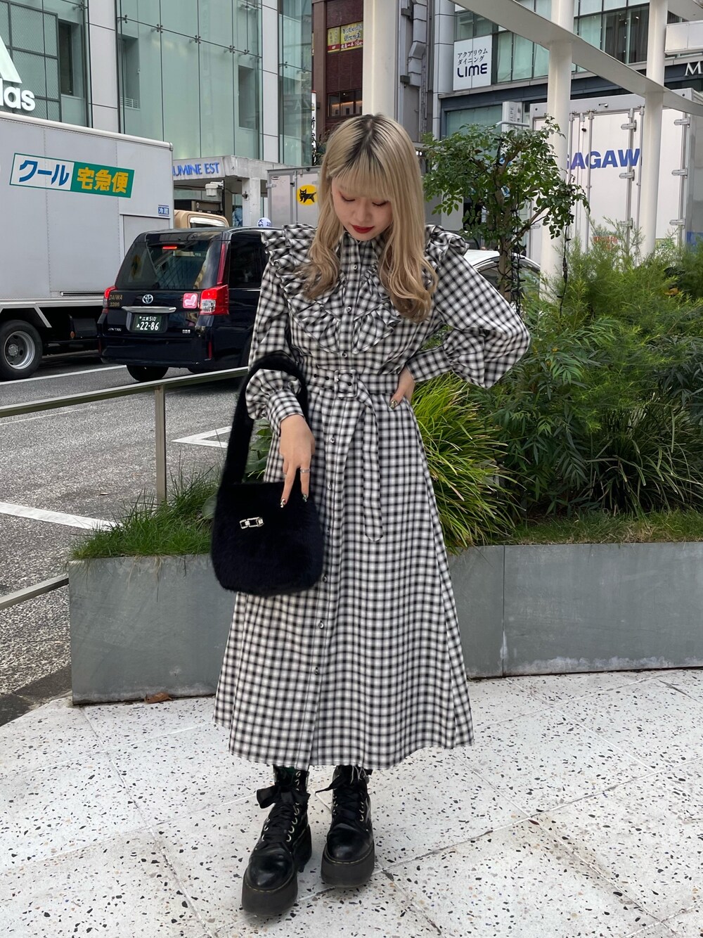 MOMOKA(jouetie)のワンピース「フリルロングシャツワンピース」を使ったコーディネート