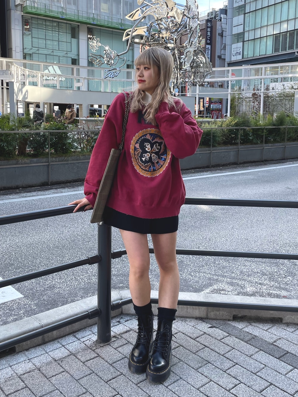 MOMOKA(jouetie)のスウェット「KISS ダメージプルオーバー【コラボ】」を使ったコーディネート