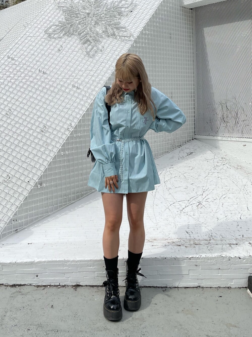 【シャツ】 オーバーサイズのストライプシャツは160cmの私でもミニワンピ風に着れます! タンクトップやTシャツに羽織としても着れるので着回し力も抜群です◎ 胸元のJTロゴがとっても可愛い❤️🩹