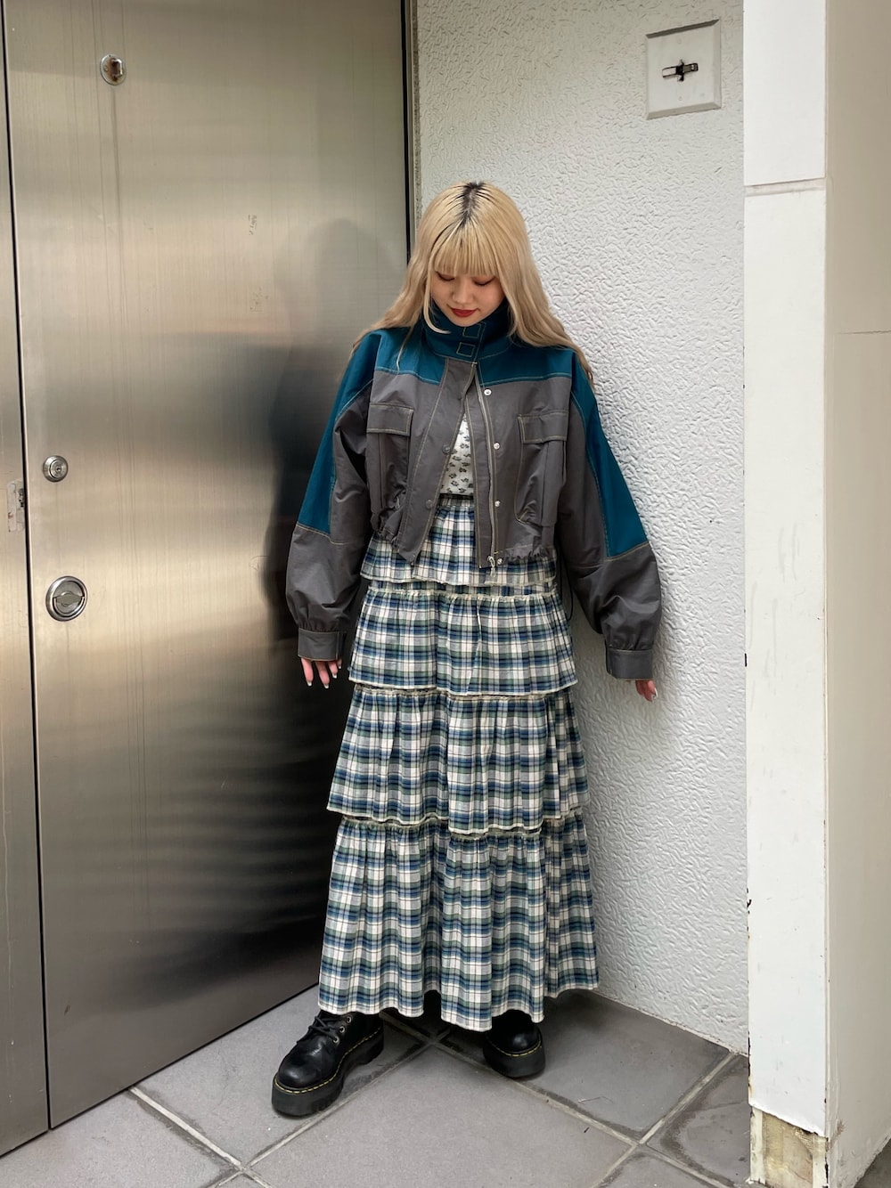 【ブルゾン】 スポーティな印象のショート丈のブルゾン🩵 バイカラーの配色が可愛い🫶🏻 【スカート】 フリルティアードスカートは広がりすぎないデザインなのですっきり細見えします✊🏻ウエストがオールゴムで楽チンなのもポイント!