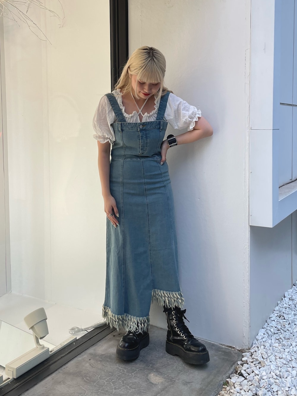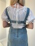 【トップス】 オフショルにもできる2wayブラウス🤍 柔らかい素材感で着心地抜群です◎ スクエアネックなので骨ストさんにもおすすめアイテム! 【ジャンスカ】 伸縮性のあるデニムなので着心地抜群◎ 肩紐を取り外しベアワンピとしても着まわしできます!