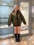 カラーコーデ💚🤎 【アウター】 MA-1はボリューム感たっぷりのシルエットが可愛い◎ 裏地もしっかりついているのでインナーに着込まなくても暖かいのも嬉しいポイント! 袖もゆったりしているのでオーバーシルエットのトレーナーも余裕で着込めます🤍 160cmでもお尻がすっぽり隠れるサイズ感です◎ 【ワンピース】 1枚でワンピース、ZIPを開けると羽織としても着れる万能アイテム◎ウエストがマークできるベルト付きなので足長効果抜群です! 160cmの私で膝上10cmぐらいなのでインナーのボトムも見えずちょうど良い丈感で着ていただけます!