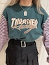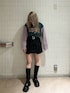 THRASHER × jouetie 💚 【トップス】 THRASHERコラボアイテム! フロントのワッペンロゴや、両袖がボーダーになっているのも可愛いポイント⭐️ 【ボトムス】 大きめのポケットがアクセントのスカート🤍インナーパンツ付きなので1枚で着ていただけます!ポッケが1cm長く出てるので脚も細く見えます◎ 【ブーツ】 25cmでLサイズ着用。 ボリュームソールで重ためのデザインが可愛い🤍軽いので長時間歩いても疲れないのも嬉しいポイント!