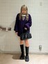 パープルコーデ💟 【ニット】 オーバーサイズが可愛いニット🤍 160cmでもミニワンピ丈で着れちゃいます◎ フロントが開いているので、ロンTなどをレイヤードするスタイルもオススメ!! 【タートル】 ボーダーのタートルネックはコーデのアクセントに◎ 【バッグ】 ショルダータイプにもハンドでも使える2wayタイプのバッグ。 スポーティな目を引くデザインが可愛い◎ 【ブーツ】 25cmでLサイズ着用。 ボリュームソールで重ためのデザインが可愛い🤍軽いので長時間歩いても疲れないのも嬉しいポイント!