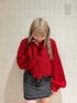 赤コーデ❤️ 【トップス】 ダメージ加工がjouetieらしくて可愛いニット。 クロップド丈でハイウエストのアイテムと合わせるとスタイルアップ効果も◎ 【ボトムス】 フロントボタンと切りっぱなしデザインがアクセントのスカート🤍インナーパンツ付きなので1枚で着ていただけます! 【ブーツ】 25cmでLサイズ着用。 ボリュームソールで重ためのデザインが可愛い🤍軽いので長時間歩いても疲れないのも嬉しいポイント!