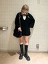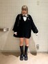 モノトーンコーデ🖤 【ニット】 オーバーサイズが可愛いニット🤍 160cmでもミニワンピ丈で着れちゃいます◎ フロントが開いているので、ロンTなどをレイヤードするスタイルもオススメ!! 【シャツ】 トレンドのドットが可愛いシャツ。 オリジナルのJマークが入っていて個性的な印象に◎ 【バッグ】 Y2K感を取り入れられるファーBAG。 2種類の生地で他にはなかなか無いデザインが可愛い◎チェーンは長くも短くもできる2WAY仕様です! 【ブーツ】 25cmでLサイズ着用。 ボリュームソールで重ためのデザインが可愛い🤍軽いので長時間歩いても疲れないのも嬉しいポイント!