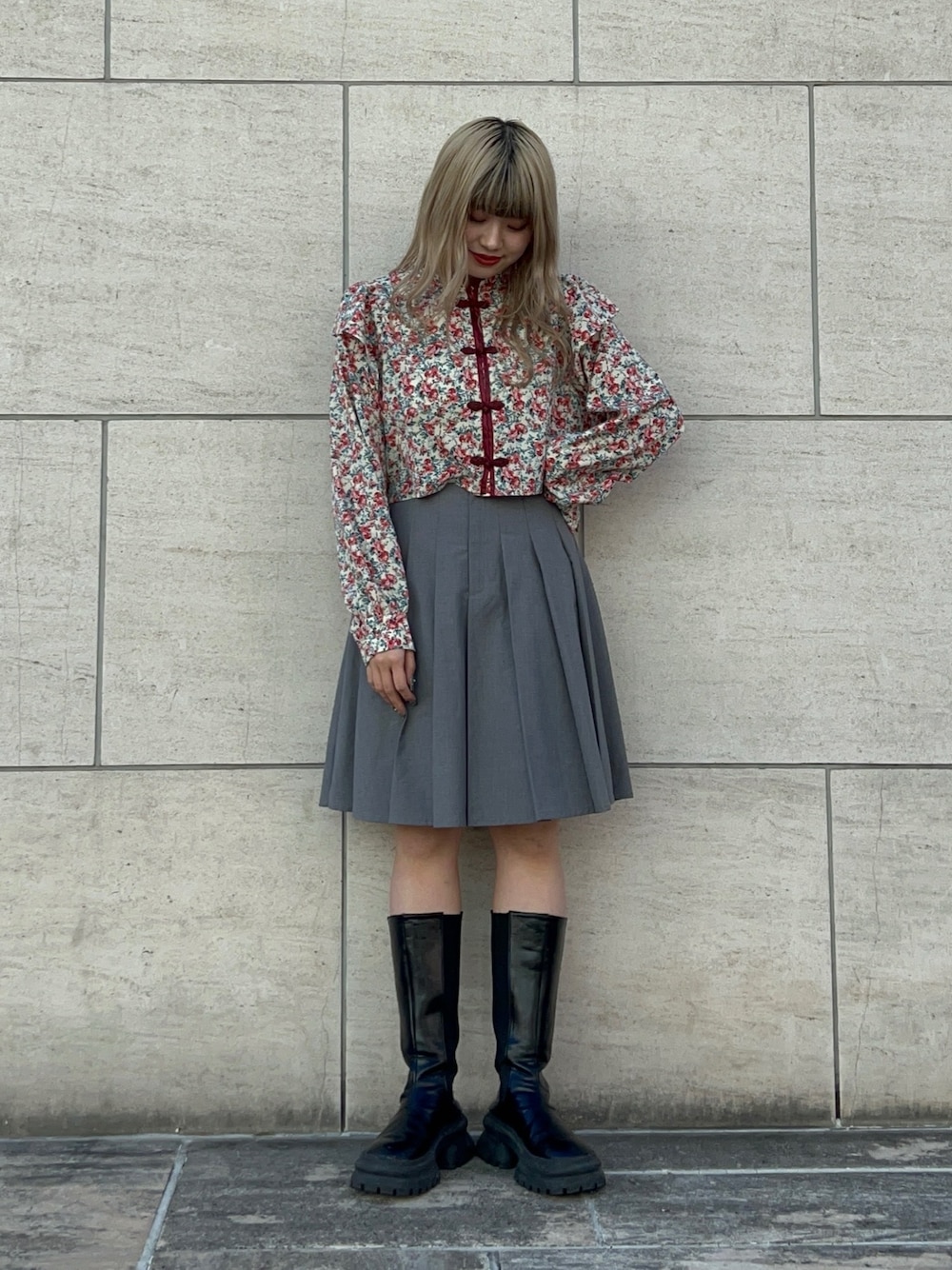 リール着用アイテム🤍 【シャツ】 jouetieで毎年人気のチャイナシャツがクロップド丈で登場🫶🏻 肩のフリルがガーリーで可愛い🤍 生地は薄めですが透け感もなく一枚で着用いただけます◎ 【スカート】 今期トレンドのミドル丈のプリーツスカート。 ハイウエストでどんなトップスにも合わせやすい🤍 【ブーツ】 25cmでLサイズ着用。 ボリュームソールで重ためのデザインが可愛い! 軽いので長時間歩いても疲れないのも嬉しいポイント!
