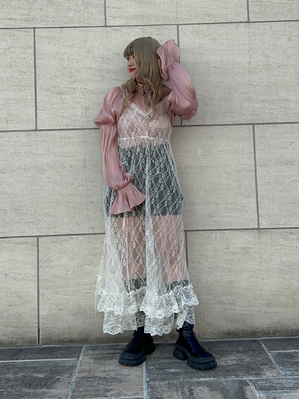 リール着用アイテム🤍 【シャツ】 ボリュームスリーブが可愛いシアーシャツ。 光沢感と透け感のある素材が春にぴったり! jouetieらしくバンTなどをレイヤードするスタイルもおすすめ。 丈も長めで160cmでお尻がすっぽり隠れます◎ 【ワンピース】 レースのキャミワンピース。 裾部分にフリルが溜まるデザインが可愛い🤍 肩紐で長さ調整もできるので低身長さんや高身長さんにもおすすめアイテム✨ 【スカート】 インナーパンツ付きの嬉しいデニムスカパン。 ステッチやサイドのベルトもアクセントで珍しいデザイン。 【ブーツ】 25cmでLサイズ着用。 ボリュームソールで重ためのデザインが可愛い! 軽いので長時間歩いても疲れないのも嬉しいポイント!