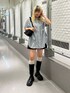 スクールガール風🩵🩶 【シャツ】 オーバーサイズのストライプシャツは160cmの私でもミニワンピ風に着れます! タンクトップやTシャツに羽織としても着れるので着回し力も抜群です◎ サイドのウエスト部分にベルトもついておりマークできるのも嬉しいポイント!🤍 胸元のJTロゴが可愛い! ネクタイも付属でついてます🤍 【スカート】 定番のプリーツスカートですが、レイヤードでシャツ素材が見えていて個性的なスカート。 ウエストのベルトがワンポイントに◎ インナーパンツは付いていないアイテムなので、 デニムなどのボトムスとのレイヤードにも◎ 【バッグ】 くしゅくしゅの持ち手ぶぶんはドローコードで長さの調整も可能です!
