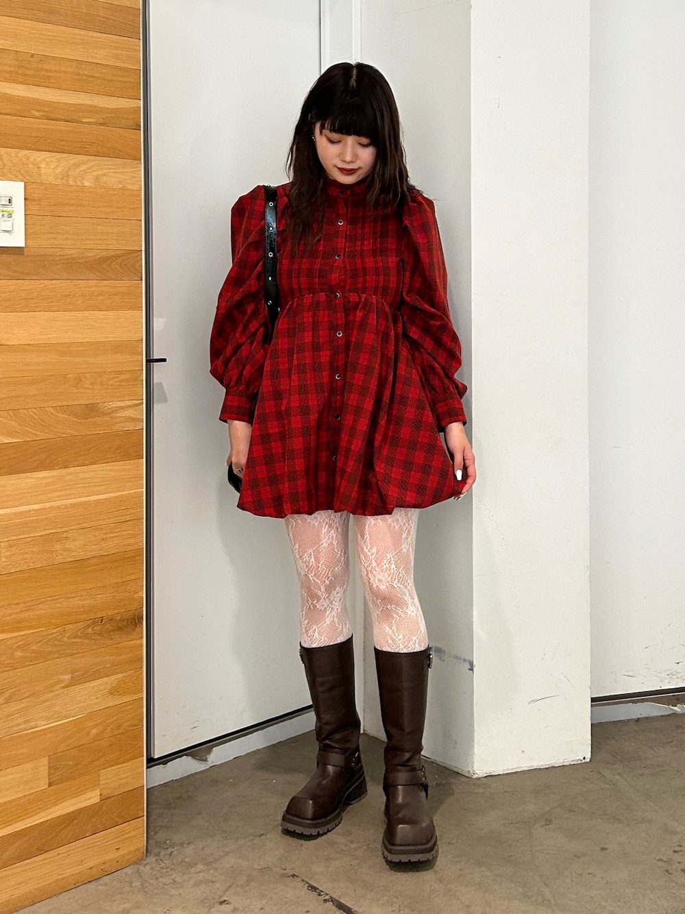 赤チェックコーデ 【ワンピース】 トレンドのバルーンスカートと ボリュームスリーブが1枚になった主役ワンピ⭐️ 襟元のフリルやふんわり広がるシルエットが ガーリー好きさんには堪らない..!! 160cmでもインナーパンツが見えない丈感なのでミニワンピとしても、 ロングボトム合わせでチュニックにも◎ 【バッグ】 ベルト部分は長さ調整できるので、斜めがけとしても使えます◎ A4サイズがすっぽり入る大容量タイプです🤍 【シューズ】 厚底でスクエアのデザインが可愛い🤍 軽くて歩きやすいのが嬉しいポイント◎ 25cmでLサイズ着用です。