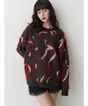 MOMOKA(jouetie)のニット/セーター「モチーフシャギーニット リボン/スター/赤ニット」を使ったコーディネート