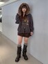 ⭐︎フーディ モンチッチコラボアイテム。 ビックシルエットとダブルzipがポイント。 大きめのフーディにファーデザインでトレンド感◎ ⭐︎スカート インナーパンツ付きで安心。 ベルト後ろ部分がゴムになっています。 ⭐︎ブーツ 25cmでLサイズ着用